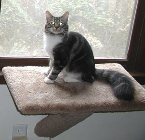 This carpeted window perch will help keep your cat entertained all day. Great for nature watching, very sturdy for large cats, bottom pole used as scratching post