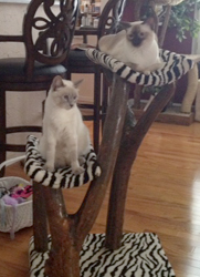 The original Rustic Cat Tree is contructed from real tree branches, so no two cat trees are exactly alike. We make them in a variety of levels (from 2 to 10) and all can be customized with a variety of add ons.